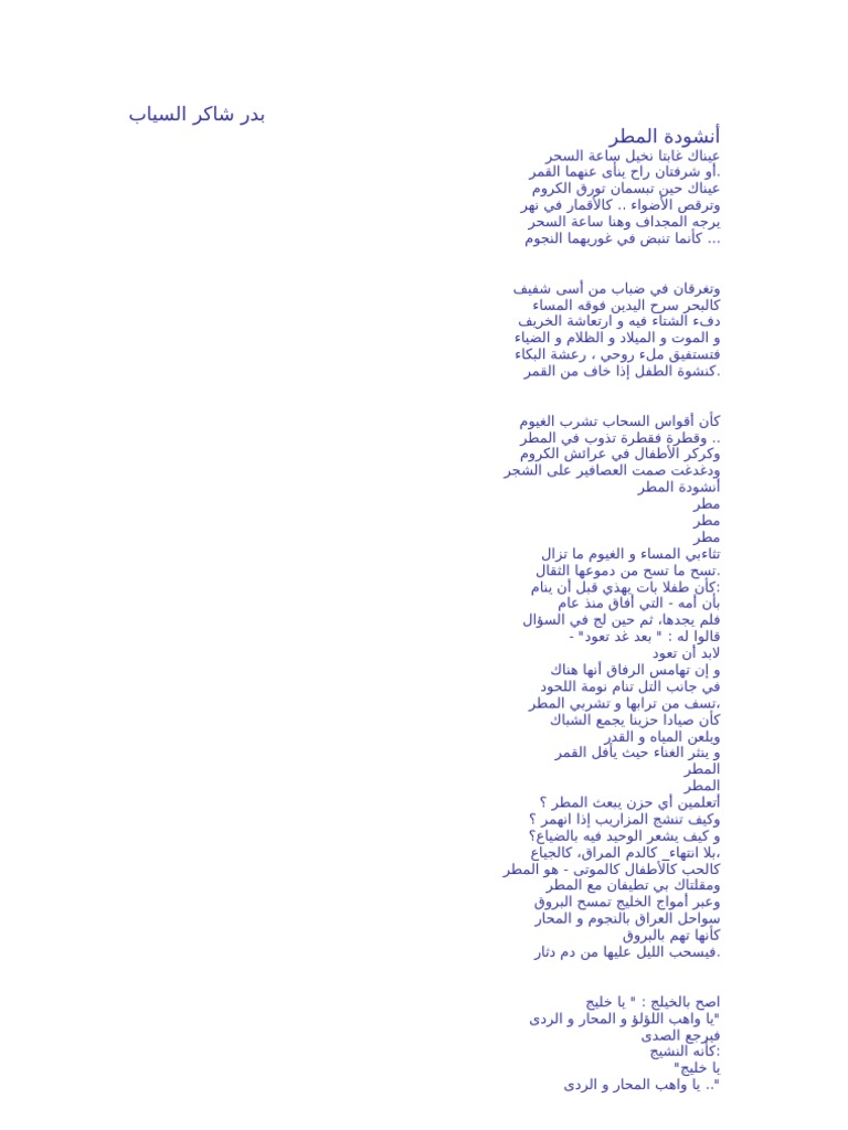 أنشودة المطر للسياب Pdf