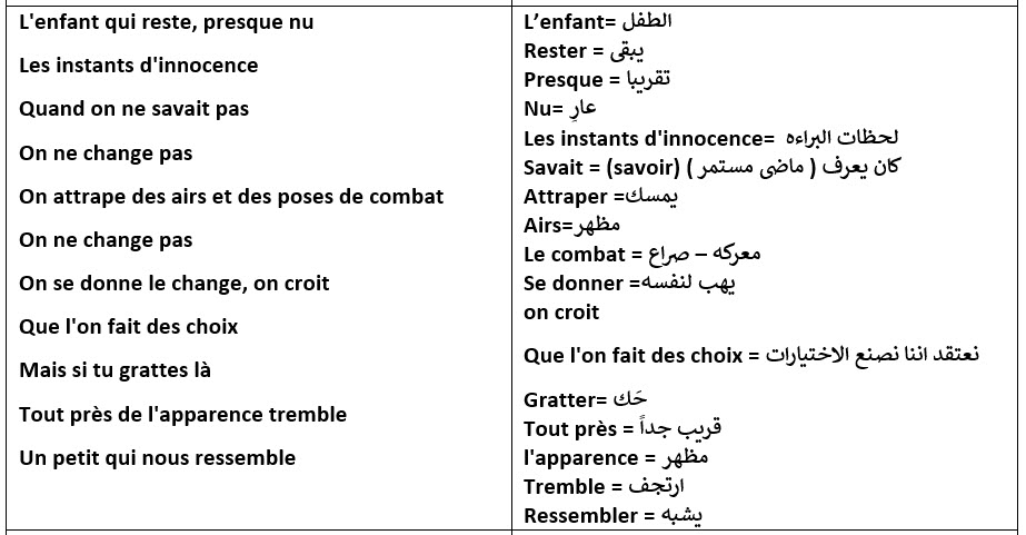 كلمات وترجمه اغنيه On Ne Change Pas Bienvenue