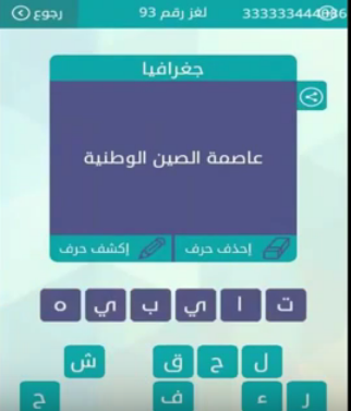 اجابة سؤال عاصمة الصين الوطنية لغز رقم 93 من لعبة وصلة للمجموعة الحادى عشر صقور الإبدآع